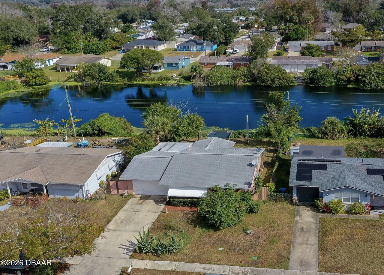 Welcome to this charming 2-bedroom, 1.5-bath home in the Beverly Hills community with direct lake views and a peaceful backyard setting. This well-maintained home offers a bright, comfortable layout that feels both practical and welcoming. The spacious living area is filled with natural light from large front windows and offers plenty of room for everyday living or entertaining. The adjacent dedicated dining area features sliding glass doors that provide a bright backdrop and easy access to the outdoor living space. The kitchen features rich wood cabinetry, generous counter space, ample storage, pantry access, and open sightlines to the living area for added convenience. The primary bedroom offers soft natural light, a cozy atmosphere, and access to a half bath. A second bedroom provides flexible space for guests, family, or a home office...Continued... An inviting enclosed porch adds valuable flex space for lounging, hobbies, or a secondary sitting area, with walls of windows that bring in abundant light and frame the backyard views. The spacious backyard features offers open lawn space, mature landscaping, and peaceful water views that create a tranquil outdoor setting for everyday enjoyment. With no HOA, the property offers added flexibility and fewer restrictions. Roof 2016, AC 2021, Water heater 2018. Conveniently located near major highways, dining, shopping, entertainment, the Intracoastal and of course, the World's Most Famous Beach. All information recorded in the MLS is intended to be accurate but cannot be guaranteed.